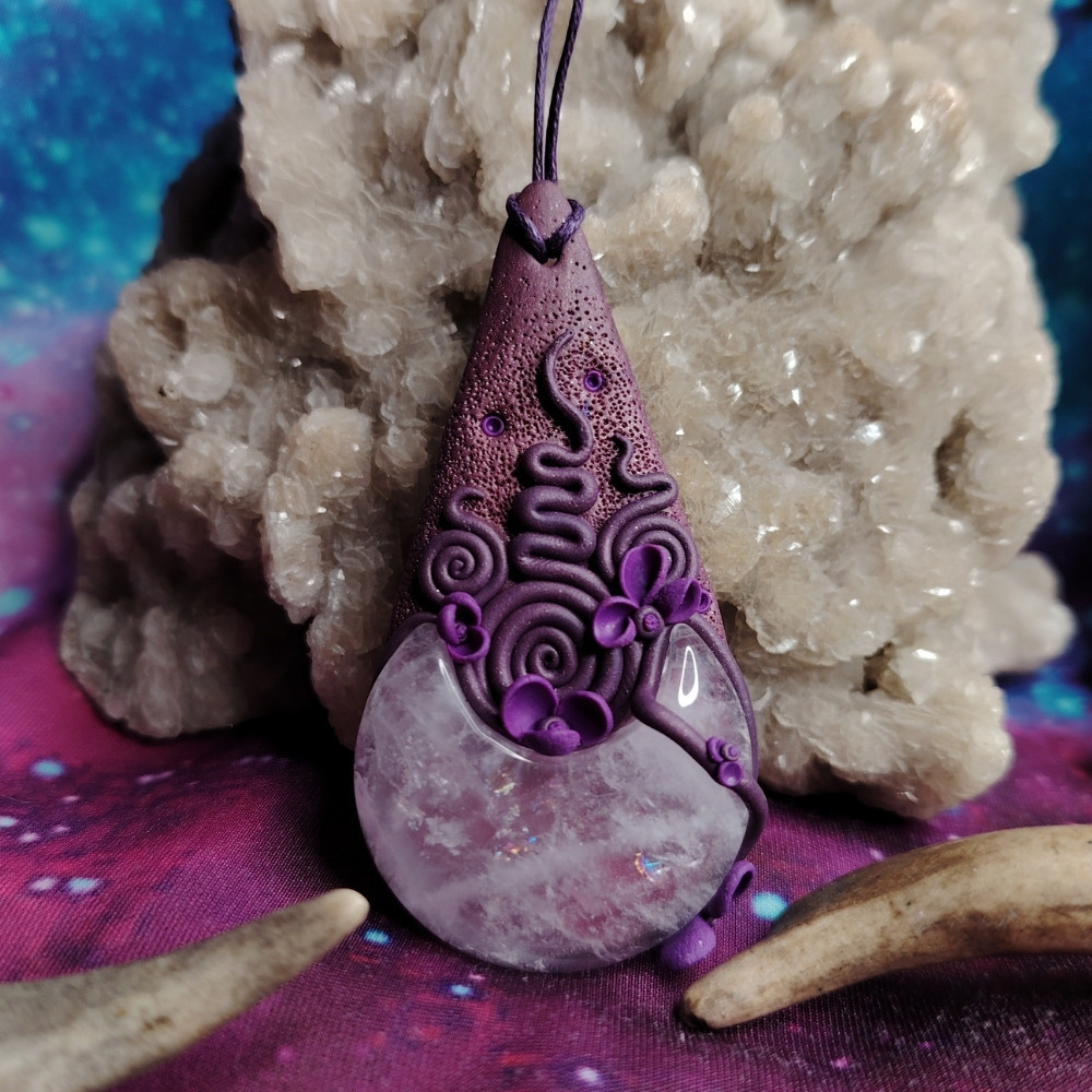 Hold formára csiszolt hegyikristály, általam formált foglalatban.